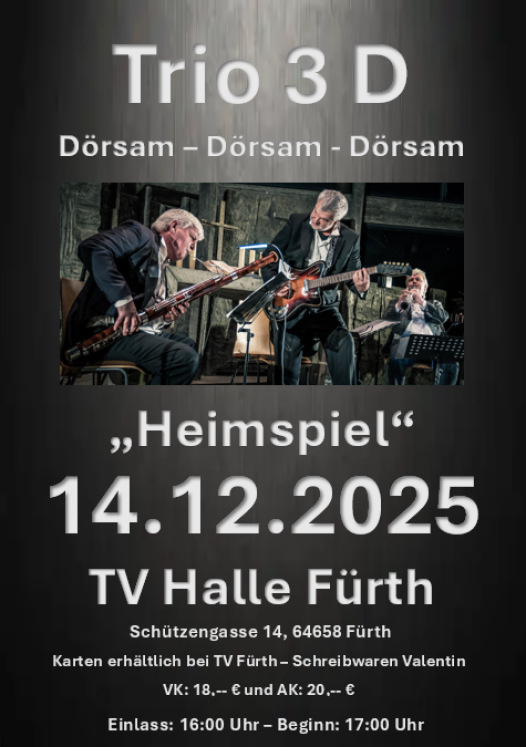Beim Programm "Heimspiel" am 14.12. in der TV Halle Fürth werden auch