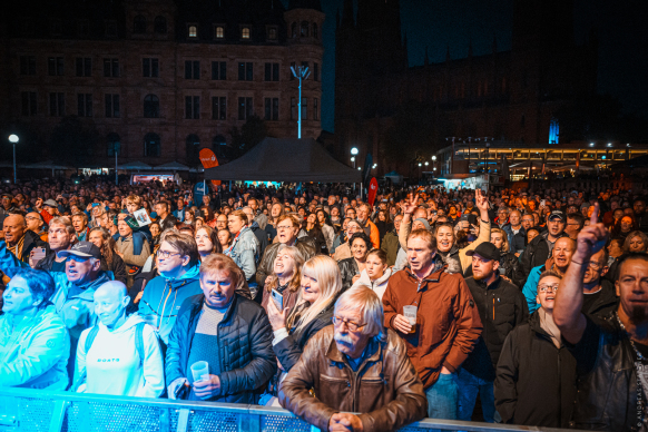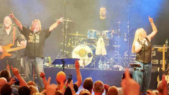 Die Rodgau Monotones spielten ein begeisterndes Jubiläumskonzert, bei dem Band und Zuschauer des verstorbenen Gitarristen Raimund Salg gedachten. © REINHARD PAUL
