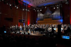 Besucher, aktiv am Konzert mitzuwirken und die Liedtexte mitzusingen, die auf eine Leinwand projiziert wurden. Ein Höhepunkt war der Vortrag „Atem, tiefer Klang der Seele“, bei dem Plüss an der Orgel