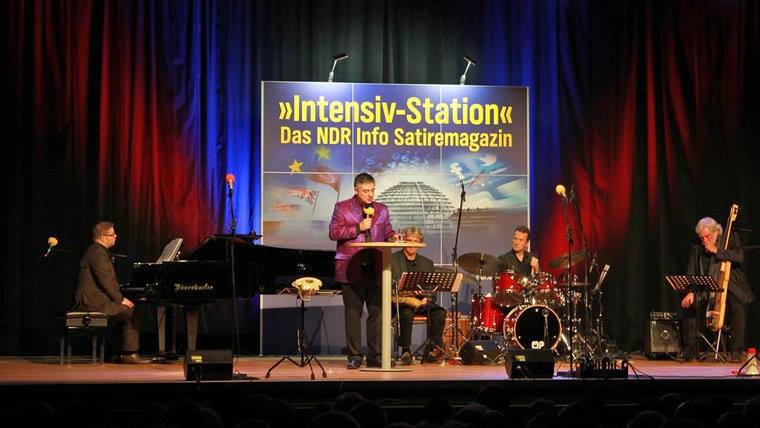 "Finanzbeamter" Chin Meyer sucht EINEN ehrlichen Steuerzahler im Saal, am Ende muss Saxophonist Matthias Dörsam seine Konten offenlegen, die Peiner