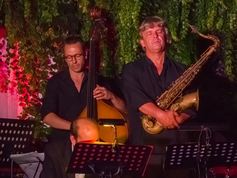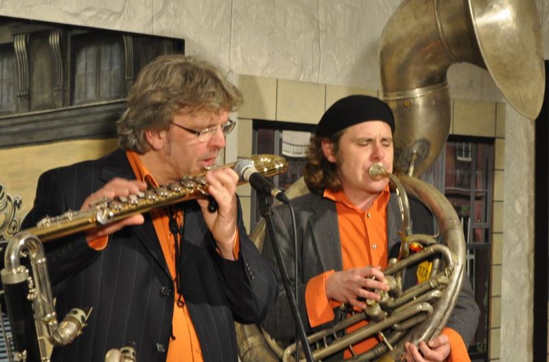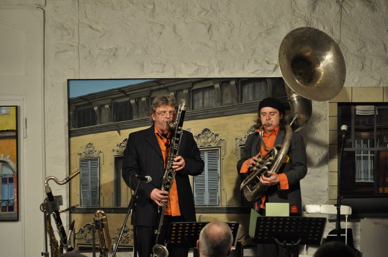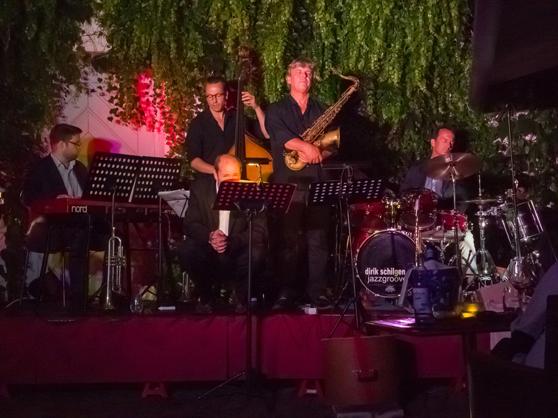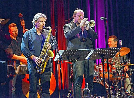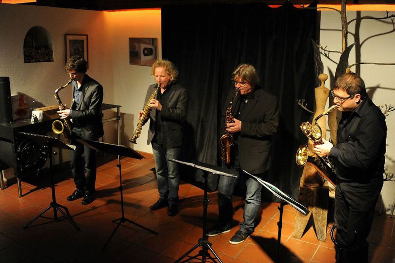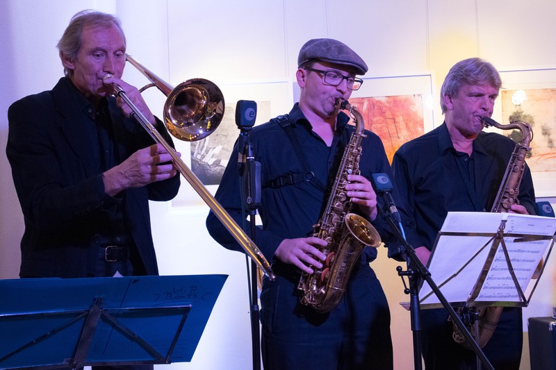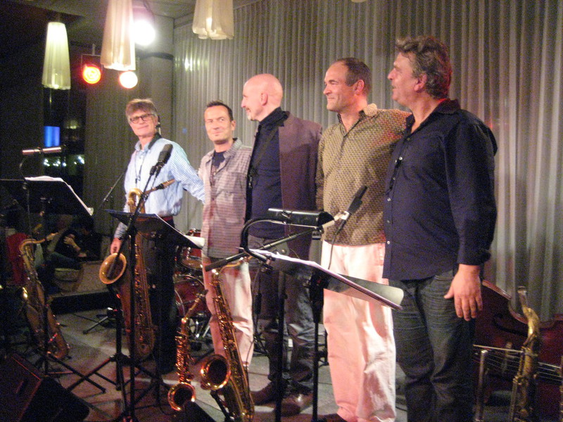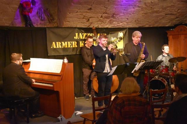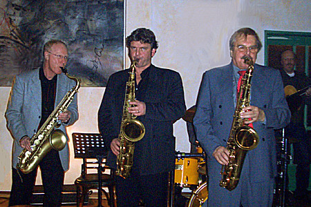 Saxofonisten Matthias Dörsam und Andreas Francke sowie die Rhythmusgruppe, bestehend aus dem Schlagzeuger Herbert Wachter, dem Bassisten Hansi Schuller und dessen Sohn Max am Klavier, der neu –
